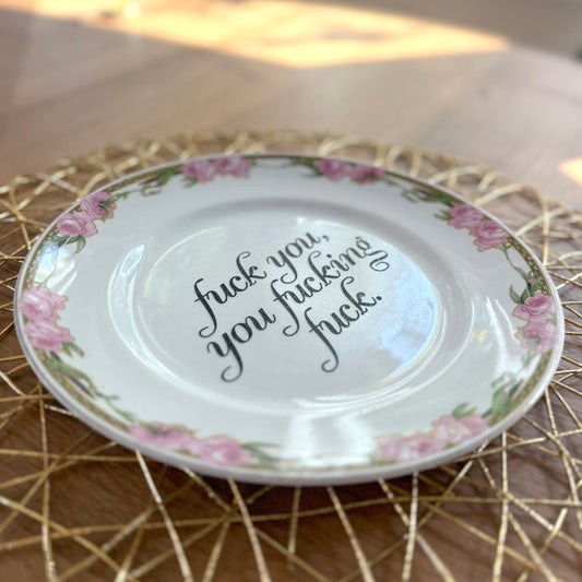"Fuck You, You Fucking Fuck" | Snarky Home Decor | Upcycled Vintage Decorative Plate | 9 in