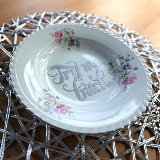 "Try Me, Bitch" | Sassy Home Decor | Vintage Upcycled Large Trinket Tray | 8.5 in
