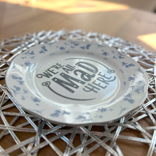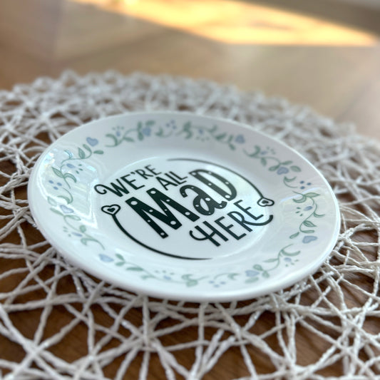 "We're All Mad Here" | Alice in Wonderland Decor | Upcycled Vintage Decorative Plate | 7 in
