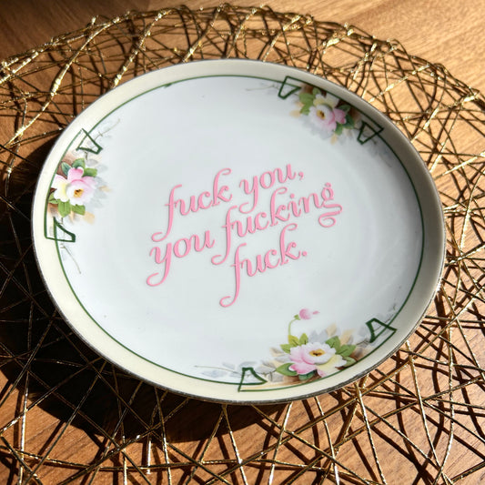"Fuck You, You Fucking Fuck" | Sassy Phrase Art | Upcycled Vintage Decorative Plate | 7.5 in