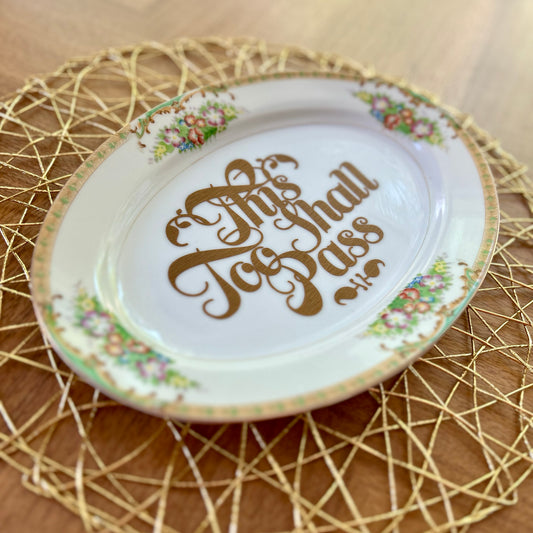 "This Too Shall Pass" | Country Farmhouse Decor | Upcycled Vintage Decorative Platter | 11 x 8 in