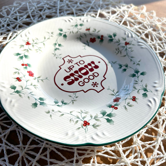 "Up To Snow Good" | Winter Holiday Decor | Upcycled Decorative Plate | 8 in