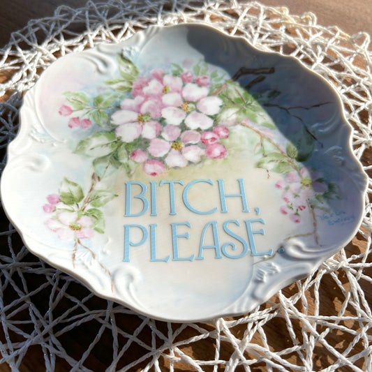 "Bitch Please" | Sassy Phrase Art | Decorative Vintage Upcycled Plate | 8 in