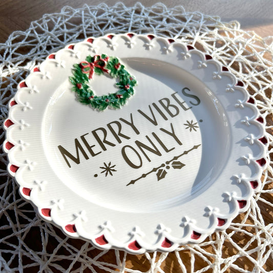 "Merry Vibes Only" | Christmas Holiday Decor | Upcycled Vintage Decorative Plate | 8 in