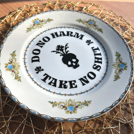 "Do No Harm, Take No Shit" | Sassy Phrase Decor | Upcycled Vintage Decorative Plate | 10 in