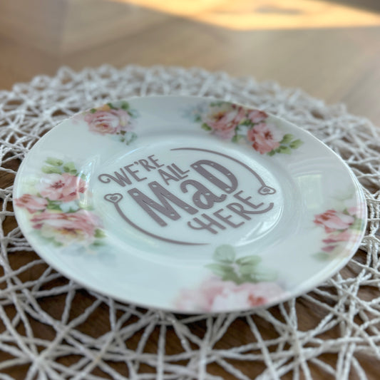 "We're All Mad Here" | Alice in Wonderland Decor | Upcycled Vintage Decorative Plate | 8 in