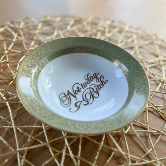 "Not Today, Bitch" | Sassy Home Decor | Vintage Upcycled Trinket Tray | 5.5 in