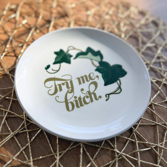 "Try Me, Bitch" | Upcycled Vintage Decorative Plate | 6.5 in