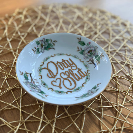 "Dirty Slut" | Raunchy Funny Decor | Vintage Upcycled Trinket Tray | 5 in