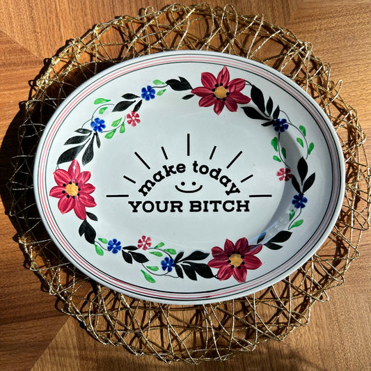 "Make Today Your Bitch" | Sassy Decor | Upcycled Vintage Decorative Platter | 12 x 10 in
