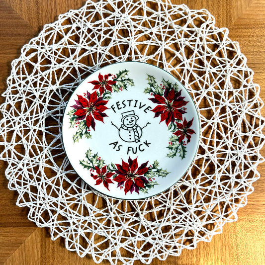 "Festive As Fuck" | Sassy Holiday Decor | Upcycled Vintage Decorative Plate | 7 in