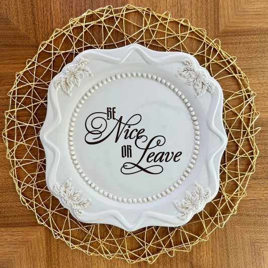 "Be Nice Or Leave" | Sassy Quote Decor | Upcycled Vintage Decorative Platter | 10.5 in
