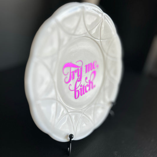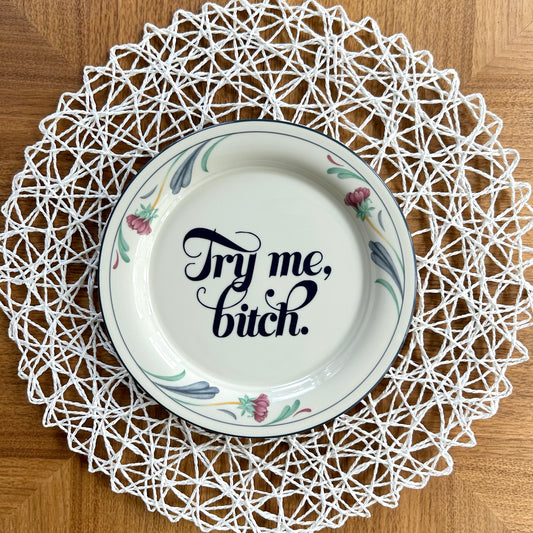 "Try Me, Bitch" | Vintage Upcycled Plate | 8.5 in