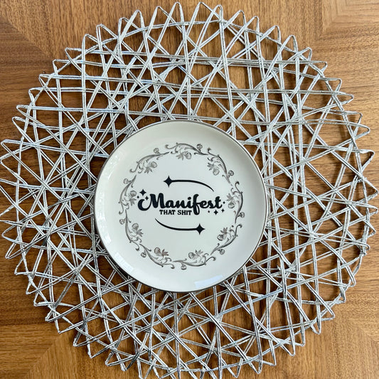 "Manifest That Shit" | Sassy Witchy Quote | Upcycled Vintage Decorative Plate | 6.75 in