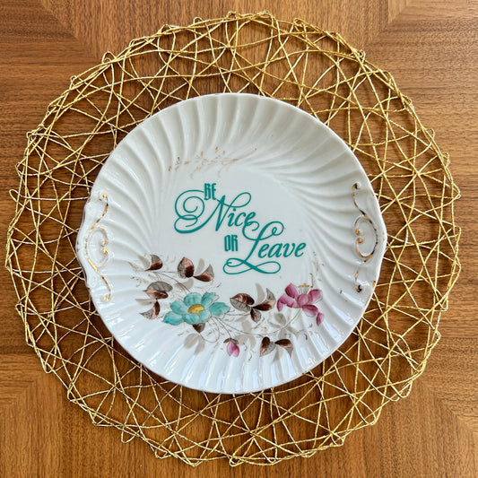 "Be Nice Or Leave" | Vintage Upcycled Plate | 9.5 in