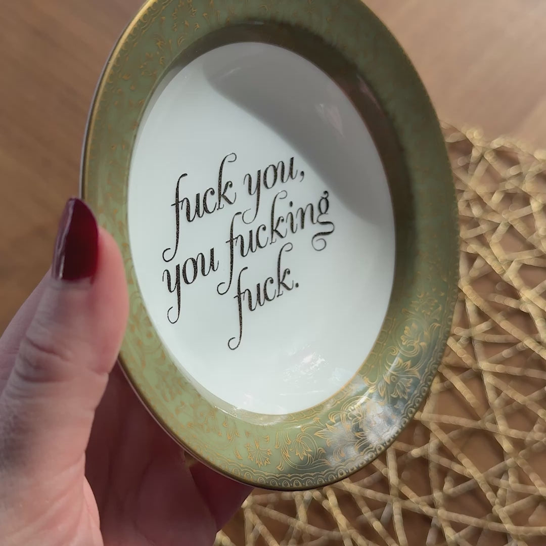 "Fuck You, You Fucking Fuck" | Upcycled Vintage Trinket Tray | 5.5 in